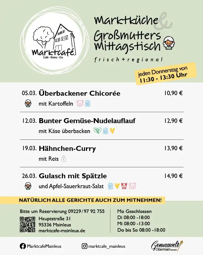 Hier erzählen wir von neuen Lieblingsgerichten, besonderen Aktionen und den Menschen, die jeden Tag mit Herz im Marktcafé Mainleus arbeiten. In kurzen Geschichten nehmen wir Sie mit zu unseren regionalen Zutaten, in die Rösttrommel unseres Kaffees und an die Backstube, in der hausgemachte Köstlichkeiten entstehen.